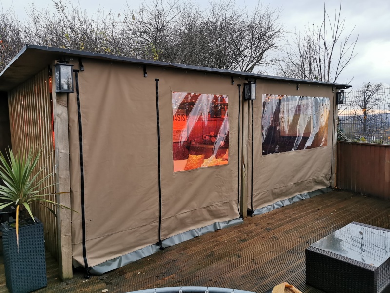 Below are a few examples of our custom canvas projects for domestic garden rooms and restaurant spaces.